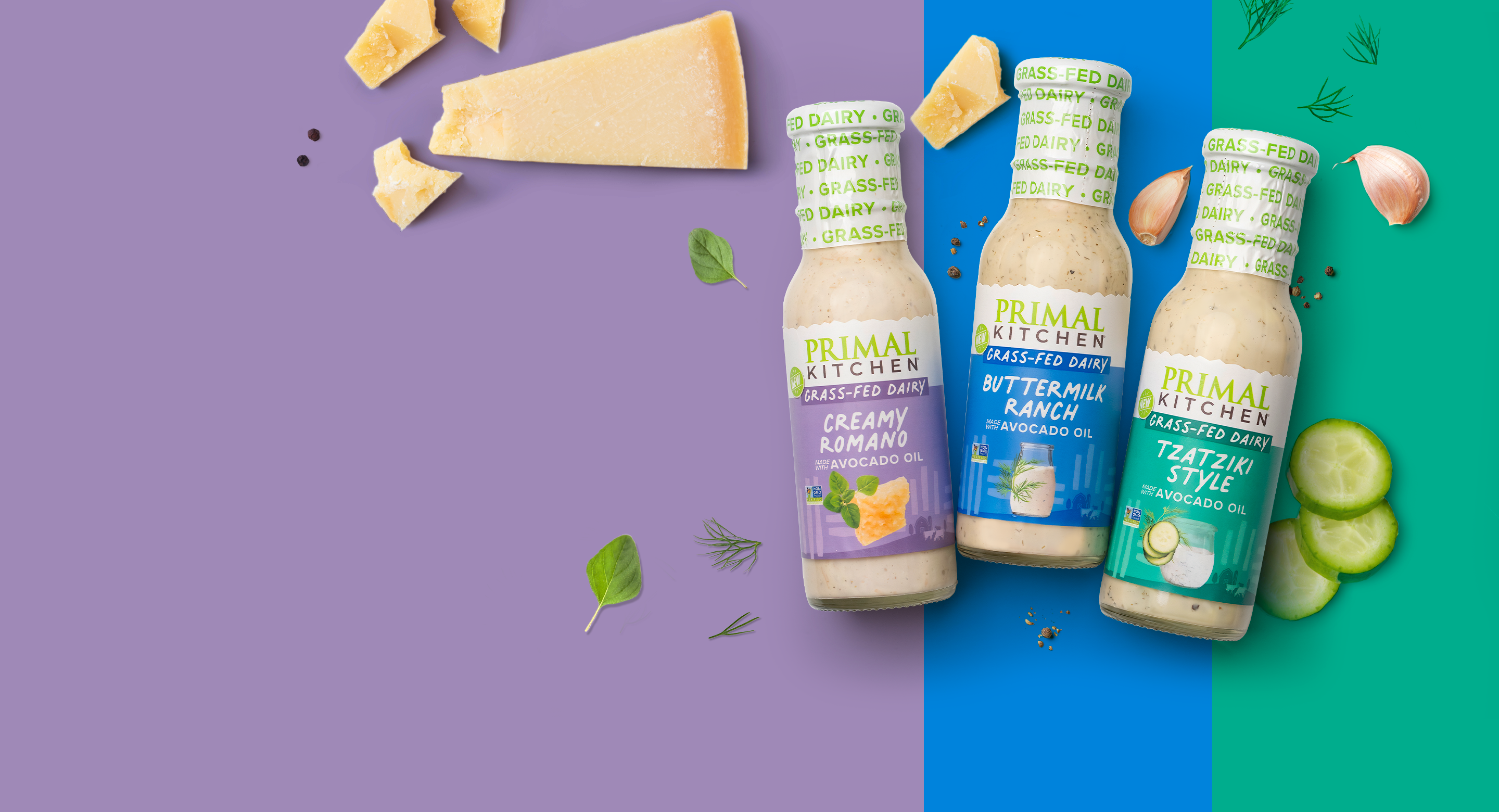 Introducing NEW dressings made with grass-fed dairy, avocado oil, and other real ingredients. These creamy dressings are grazing good!