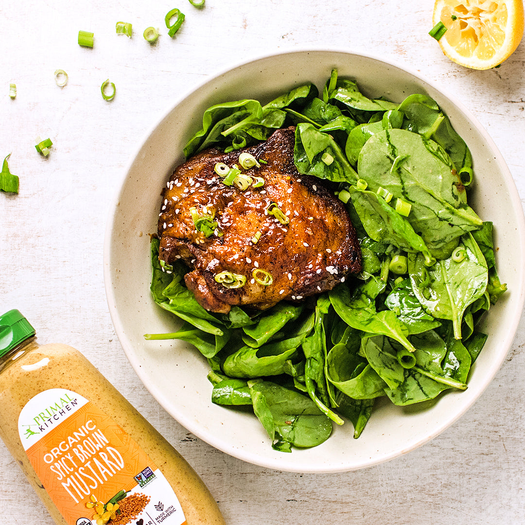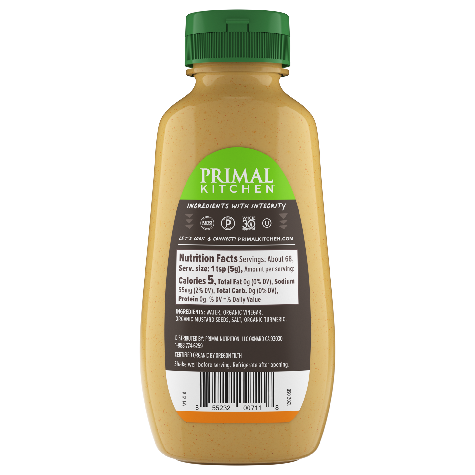 Hot dog! You're going to love this organic, Spicy Brown Mustard from PRIMAL KITCHEN®. Smoky, savory, and organic, this kicky mustard can be spread on sandwiches, slathered on sausages, or used in a sauce to spice up honey mustard chicken. Certified Paleo, Keto Certified, Whole30 Approved®, and Kosher Certified, this condiment is the new king of the cookout.