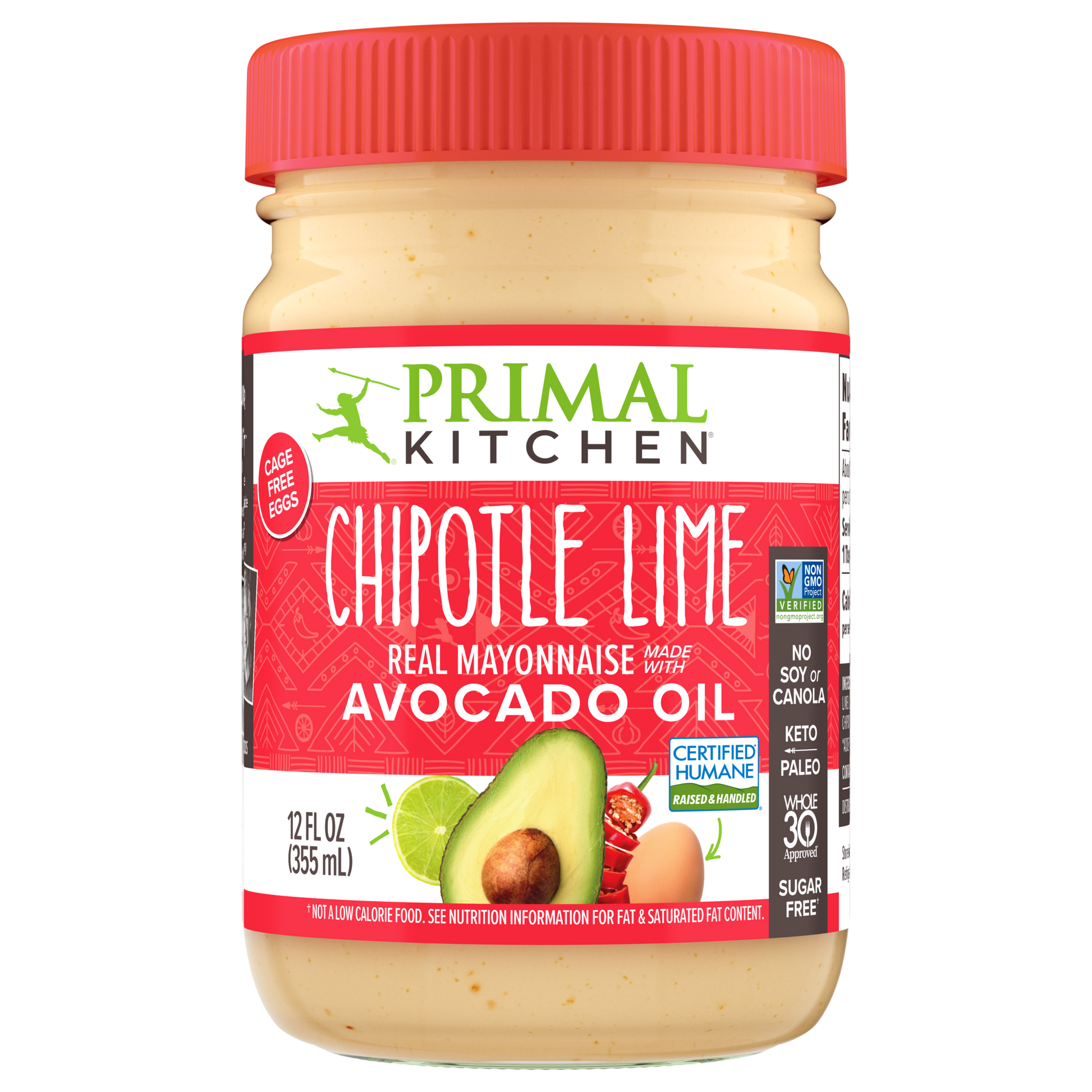 Avocado Oil, Organic Eggs, Organic Vinegar, Organic Egg Yolks, Salt, Organic Lime Juice Concentrate†, Organic Chipotle Chili Powder, Lime Granules, Garlic Powder, Chipotle Chili Pepper Extract, Organic Rosemary Extract.