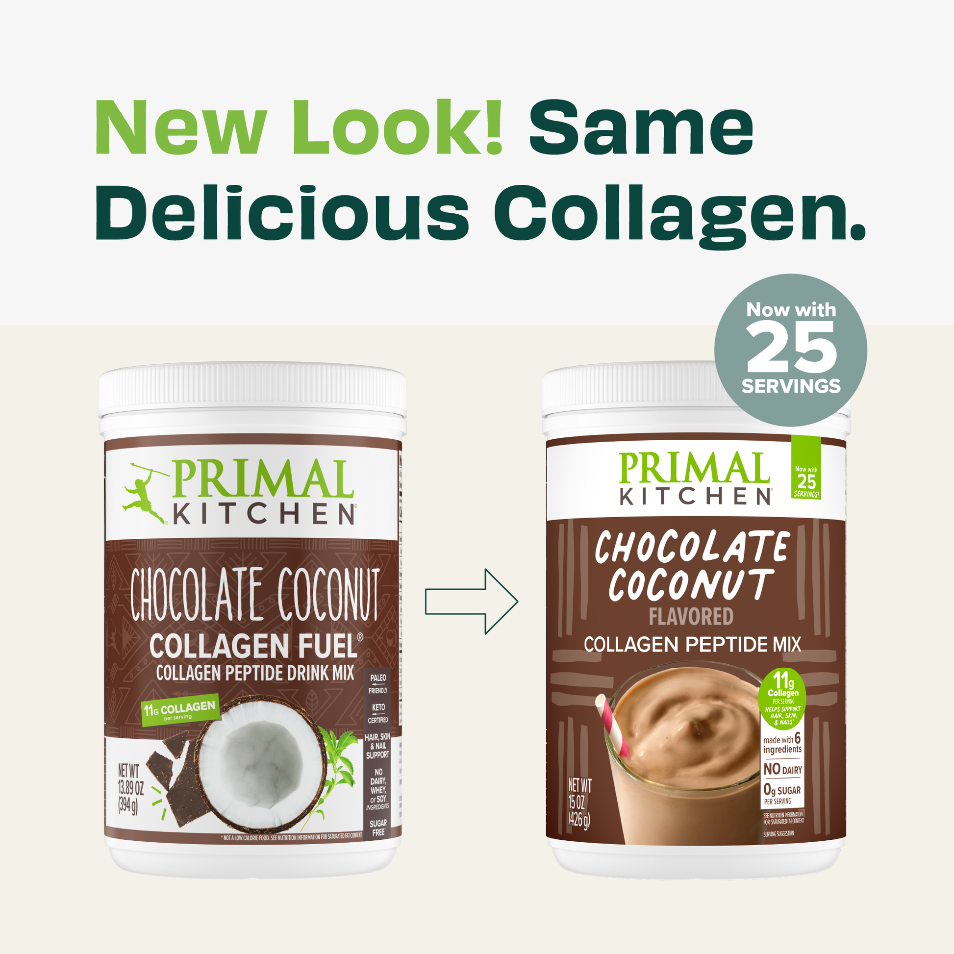 PRIMAL KITCHEN® COLLAGEN FUEL® Drink Mix is a delicious ingredient to help support hair, skin, and nails! Organic fair-trade cocoa and coconut milk powders pair perfectly with smoothies, coffee, and much more, while collagen peptides pack a punch. Tasty stirred, shaken, or blended.
