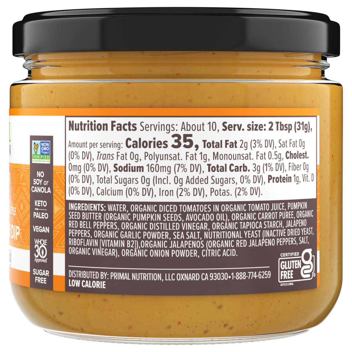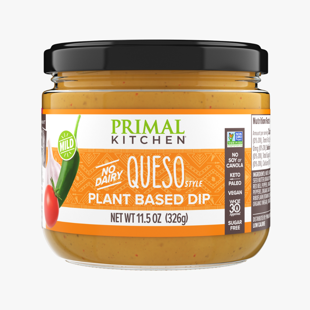 Primal Kitchen Queso Style Plant-Based Dip is the delicious, no-dairy dream for nachos, chips, veggies, burritos, and more. Sugar-free, vegan, Keto Certified, and Whole30 Approved®, this creamy queso features a hint of jalapeños for just a kick of mild chili flavor.
