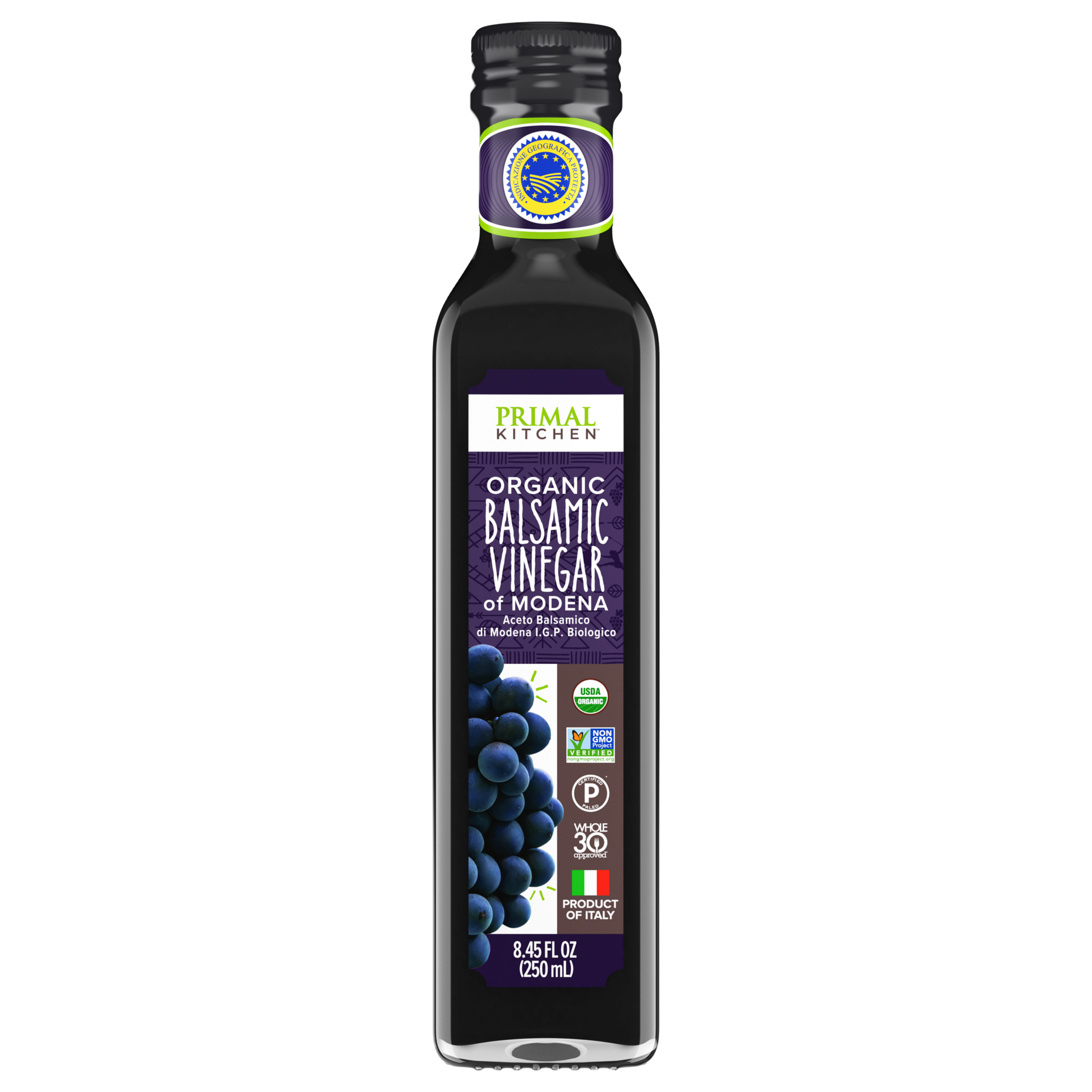 PRIMAL KITCHEN™ Organic Balsamic Vinegar of Modena is Organic, Whole30 Approved®, and Certified Paleo. This PGI-certified, high-quality Italian balsamic vinegar is perfect for drizzling on salads, glazing meats and fish, dipping fruit and sourdough—and can be reduced to make a syrupy, thick balsamic reduction. Add this authentic Balsamic Vinegar to your pantry list.