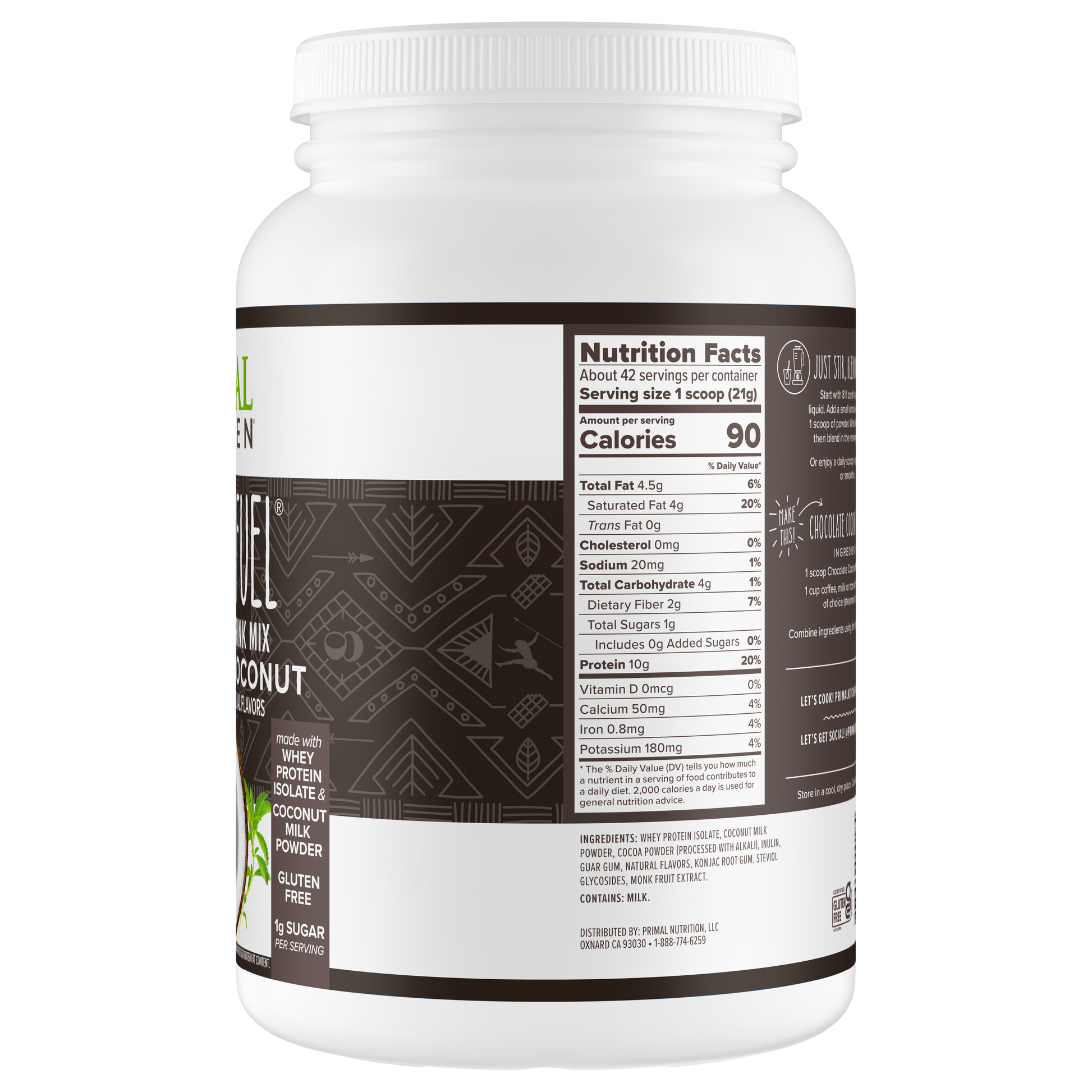 Primal Fuel: Chocolate Coconut Whey Protein Drink Mix
