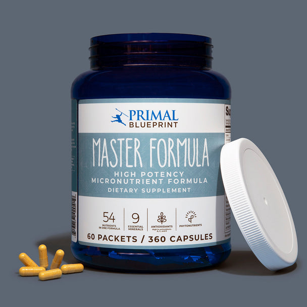 A multivitamin for men and women offering a premium high potency vitamin-mineral-antioxidant formula with phytonutrients. With 53 quality nutrients, Primal Master Formula is a comprehensive dietary supplement designed to support optimal metabolic function.†
