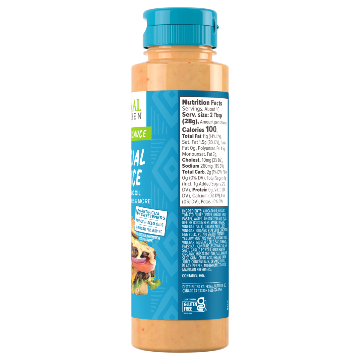 Make mealtime happier with this elevated twist on everyone’s favorite drive-thru burger sauce! Primal Kitchen Special Sauce combines the crisp, savory bite of pickle relish with tangy mustard and vibrant ketchup for lip-smacking flavor with a hint of sweetness.