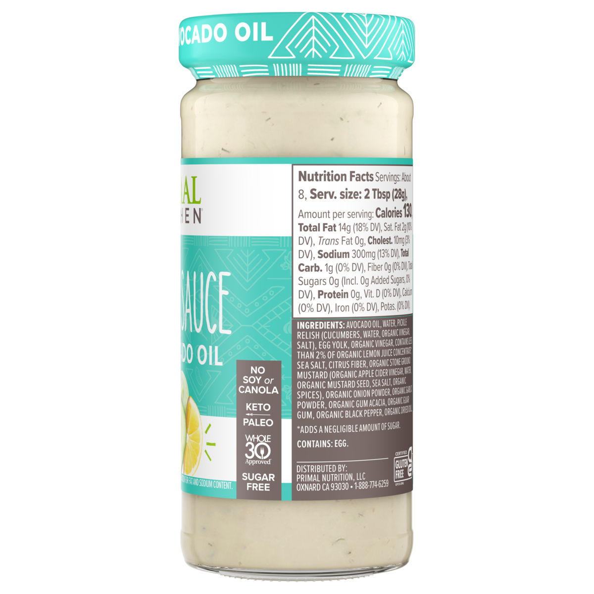 PRIMAL KITCHEN® Tartar Sauce is here and it’s kind of a big dill. Our Tartar Sauce is Whole30 Approved®, Keto and Paleo Certified, and sugar-free*, so you can slather on crab cakes, or get saucy with sweet potato fries. Creamy, tangy, with just the right amount of dill, this classic Tartar Sauce is made with avocado oil, no fishy ingredients here!