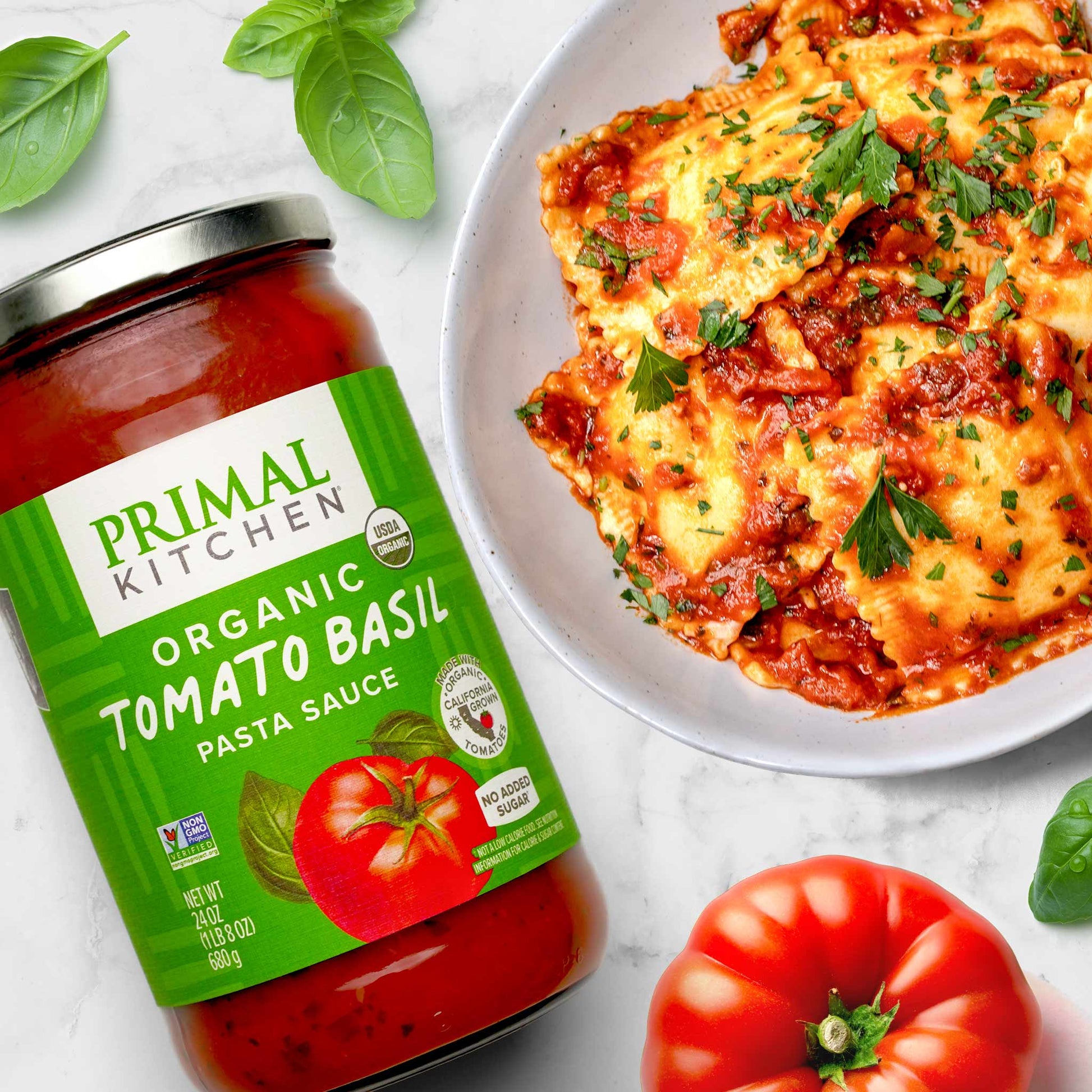 Spaghetti without the regret-ti. Primal Kitchen® Tomato Basil Marinara Sauce is made with avocado oil, California-grown organic tomatoes, and basil— a simply delicious, classic take on a pantry staple!