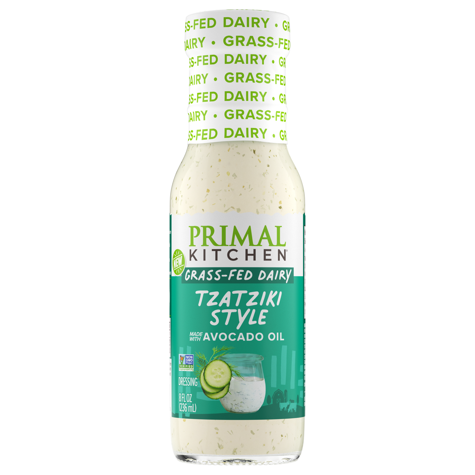 Primal Kitchen Tzatziki Style Dressing is the cool, creamy condiment of your Mediterranean dreams. This dressing delivers downright dill-icious, pasture-perfect flavor in every bite thanks to real ingredients like grass-fed yogurt, cucumber, and a medley of herbs and spices, not to mention good fats from avocado oil.